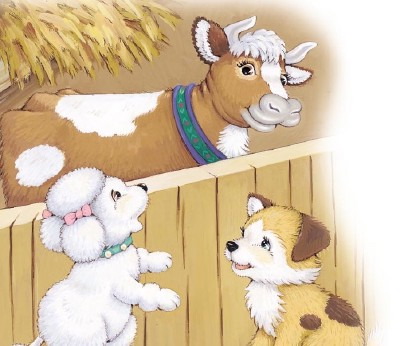 Fifi was a pretty poodle who lived in the city. One day Fifi and her family went to a new place. It had dirt roads and big fields full of plants.A scruffy little dog tramped over to Fifi. “Welcome to the farm,” said the dog. “I’m Rex.”