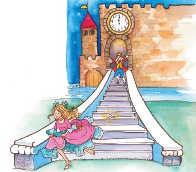 Cinderella was so happy, she forgot the time. The clock sounded the ninth stroke of midnight when Cinderella remembered the promise she had made to her fairy godmother. On the tenth stroke, Cinderella dashed out of the ballroom without ­another word to the prince, leaving him and the rest of the guests astonished!