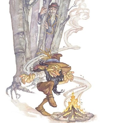 “When I was walking through the forest, I saw an odd-looking little man dancing around a fire. He hopped around the fire and sang:
